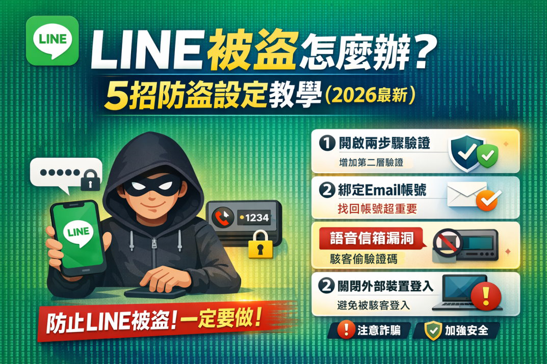 LINE 被盜怎麼辦?其實大多數 LINE 帳號被盜,並不是因為駭客技術多高,而是使用者沒有做好基本安全設定,例如沒有開啟兩步驟驗證、語音信箱仍使用預設密碼,或誤把驗證碼提供給他人。本篇整理 5 招 2026 最新 LINE 防盜設定教學,從基礎設定到最新漏洞一次說明,幫助你有效避免帳號被盜。