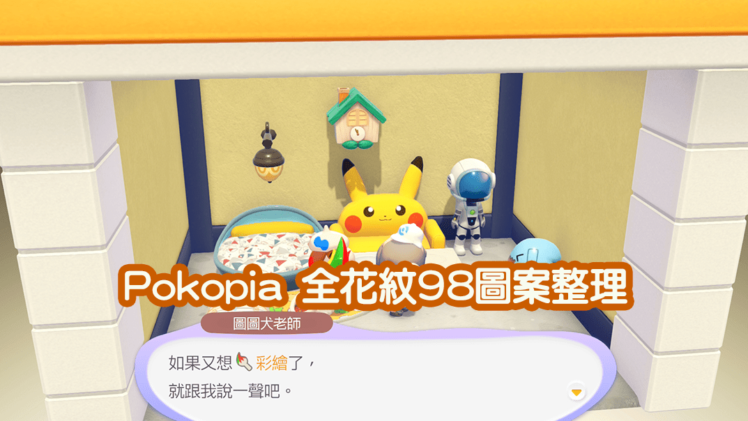 目前已知道花紋1:共38種圖案、花紋2:共60種圖案,所以Pokopia的花紋配色有98種。